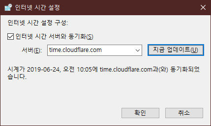 NTP 설정 창에서 time.cloudflare.com으로 설정해주면 사용중인 지역가 가장 가까운 Cloudflare 서버에서 시간을 제공해준다고 하니 필요한 사람이라면 설정하시길.