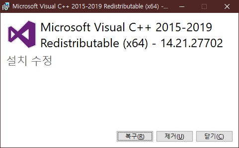 Microsoft Visual C++ 재배포 가능 패키지 다운로드 2019.06.26 10:19 PC.Div.Soft/Windows.Office 반응형 - https://support.microsoft.com/en-us/help/2977003/the-latest-supported-visual-c-downloads - https://docs.microsoft.com/en-us/cpp/windows/universal-crt-deployment?view=vs-2019 드디어(....) 각 버전별로 설치해야 했던 재배포 패키지가 통합되었다. 윈도 업데이트나 각종 게임 실행시에 자동으로 선행 설치되기도 하지만, 2015~2019의 재배포 패키지를 한 데 묶은 설치팩을 제공하니 필요한 사람들은 받아서 사용하도록 합시다. 근데 이런것들도 설치된 용량 모아보면 수백메가는 될 것 같은데, 용량 적은 태블릿 등에서는 좀 뼈아프긴 하겠다...아무튼 필요에 따라 선택하도록 합시다. *x86: https://aka.ms/vs/16/release/vc_redist.x86.exe *x64: https://aka.ms/vs/16/release/vc_redist.x64.exe *ARM64: https://aka.ms/vs/16/release/VC_redist.arm64.exe 반응형 공유하기 게시글 관리 Klein Berry 'PC.Div.Soft > Windows.Office' 카테고리의 다른 글 DTS Sound Unbound, Windows 10 20H1에서 지원? (0) 2019.07.16 Microsoft, Windows 10용 PowerToys 출시 예정 (0) 2019.05.10 Microsoft, 새로운 명령창 Windows Terminal 발표 (0) 2019.05.07 댓글 공유하기 다른 글 댓글 이 글 공유하기 구독하기 구독하기 카카오톡 카카오톡 라인 라인 트위터 트위터 Facebook Facebook 카카오스토리 카카오스토리 밴드 밴드 네이버 블로그 네이버 블로그 Pocket Pocket Evernote Evernote 다른 글 Windows 10 GDI 오브젝트 한계 조정 Windows 10 GDI 오브젝트 한계 조정 2019.07.22 DTS Sound Unbound, Windows 10 20H1에서 지원? DTS Sound Unbound, Windows 10 20H1에서 지원? 2019.07.16 Microsoft, Windows 10용 PowerToys 출시 예정 Microsoft, Windows 10용 PowerToys 출시 예정 2019.05.10 Microsoft, 새로운 명령창 Windows Terminal 발표 Microsoft, 새로운 명령창 Windows Terminal 발표 2019.05.07 다른 글 더 둘러보기