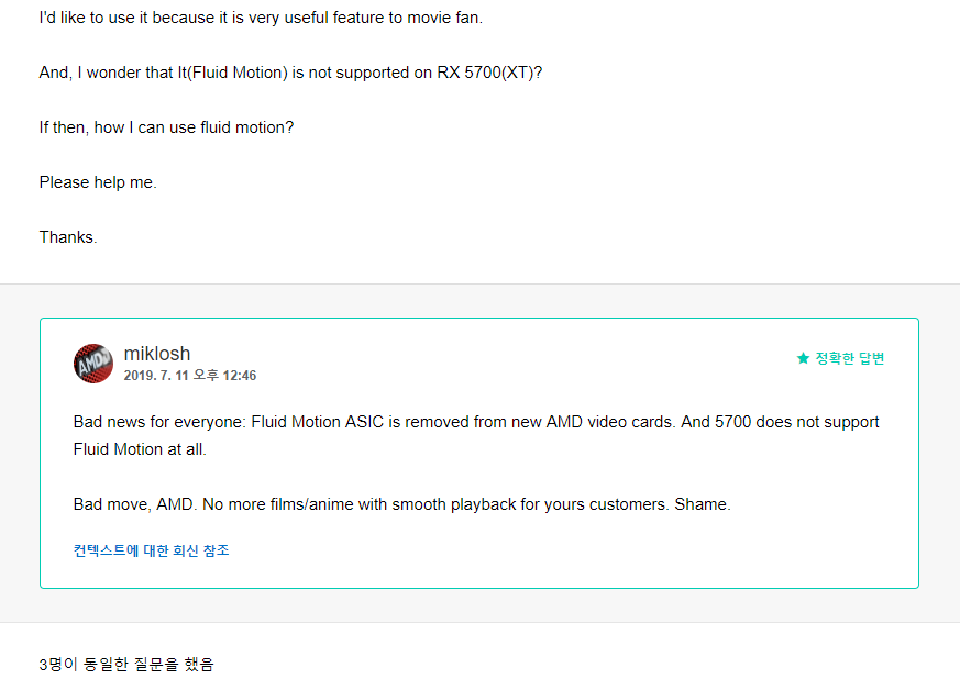- 하드웨어 배틀/파코즈서 확인했고, AMD 고객 서비스에 문의해 확인했더니 RX 5700 시리즈는 플루이드 모션 미지원이 확실하다고 하니 참조합시다.