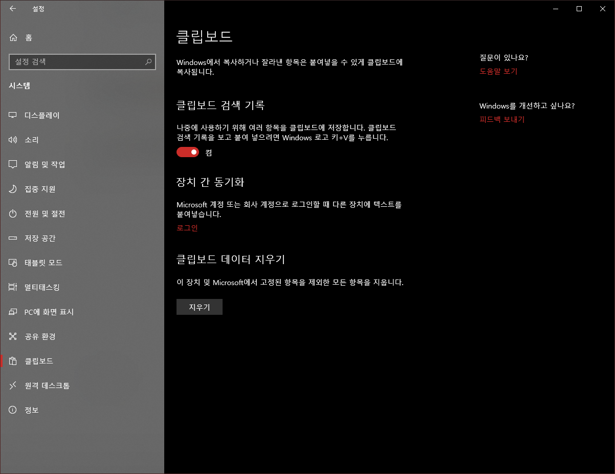 윈도 95때에도 클립보드 관리자나 Ditto, ClipX 등 여러 클립보드 유틸리티를 사용하고 있다면 큰 도움 안될 수 있는데 일단 OS에 기본 포함된 기능이니 참조해두면 나름 유용하게 쓸 수 있다. 설정 > 시스템 > 클립보드 또는 단축키 윈도+V를 사용해서 활성화 가능하고, 불러오는 것 역시 윈도+V로 가능하다. OS버전 1890부터 가능. 사실 Ditto가 정말 무료면서도 쩌는 기능이 많아서 이거쓰면 해결되는데, 윈도10이 점차 업데이트되어가면서 안드폰용 앱이나 MS 계정을 사용해서 이컴터 저컴터에서 클립보드 공유도(....) 가능하다는 게 큰 장점. 아무튼 이러한 기능이 있다는 거 정도는 알아둬서 나쁠게 없으니 참조하시라고 포스팅.