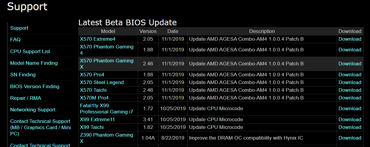 ASRock, AMD Combo-PI 1.0.0.4 Patch B 기반 BIOS 업데이트 2019.11.02 01:11 PC.Div.Soft/Driver.Firmware 반응형 - http://www.asrock.com/support/index.asp?cat=bBIOS X570 칩셋 기반의 보드들의 베타 버전 바이오스가 업데이트되었습니다. 많은 개선이 있었다고 알려진 버전인 만큼, 3세대 Ryzen 프로세서 사용자분들은 업데이트해보세요. 반응형 공유하기 게시글 관리 Klein Berry 'PC.Div.Soft > Driver.Firmware' 카테고리의 다른 글 TUF B450M-PLUS GAMING BIOS 업데이트(1823) (0) 2019.11.12 NVIDIA, Geforce Game Ready 441.08-WHQL 드라이버 출시 (0) 2019.10.30 AMD AM4 칩셋 드라이버 (0) 2019.10.19 댓글 공유하기 다른 글 댓글 이 글 공유하기 구독하기 구독하기 카카오톡 카카오톡 라인 라인 트위터 트위터 Facebook Facebook 카카오스토리 카카오스토리 밴드 밴드 네이버 블로그 네이버 블로그 Pocket Pocket Evernote Evernote 다른 글 GIGABYTE, B450 칩셋 기반의 BIOS 업데이트(AGESA 1.0.0.4B) GIGABYTE, B450 칩셋 기반의 BIOS 업데이트(AGESA 1.0.0.4B) 2019.11.17 TUF B450M-PLUS GAMING BIOS 업데이트(1823) TUF B450M-PLUS GAMING BIOS 업데이트(1823) 2019.11.12 NVIDIA, Geforce Game Ready 441.08-WHQL 드라이버 출시 NVIDIA, Geforce Game Ready 441.08-WHQL 드라이버 출시 2019.10.30 AMD AM4 칩셋 드라이버 AMD AM4 칩셋 드라이버 2019.10.19 다른 글 더 둘러보기