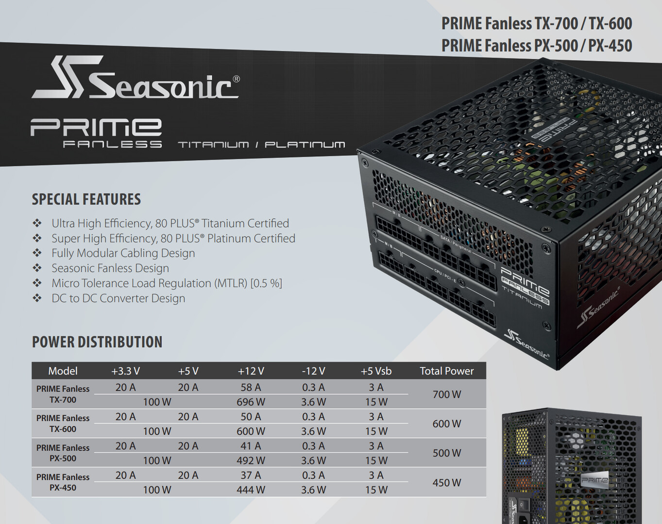 SeaSonic, 팬리스 프리미엄 PSU 삼총사 출시 2020.03.02 22:42 PC.Div.Soft/News 반응형 TPU와 FanlessTech에 따르면 지난 주 시소닉(SeaSonic)이 세종류의 팬리스 PSU를 자사의 Prime Fanless 시리즈를 달고 출시했다고 합니다. 풀 모듈러 제품인 700W(Prime Fanless TX-700, 80+ Titanium), 일반 제품인 500W/450W(최대 93%효율) 모델 하나씩이라고 하며 12년의 제품 보증이 제공된다고 하니 참조하세요. 반응형 공유하기 게시글 관리 Klein Berry 'PC.Div.Soft > News' 카테고리의 다른 글 Microsoft, Cortana 전략 변경 (0) 2020.03.02 Intel, 10nm 공정의 최대 24코어 프로세서 Atom P5900 시리즈 출시 (0) 2020.02.28 뷰소닉, USB Type-C 를 지원하는 23.8인치 LCD 모니터 발표 (0) 2020.02.28 댓글 공유하기 다른 글 댓글 이 글 공유하기 구독하기 구독하기 카카오톡 카카오톡 라인 라인 트위터 트위터 Facebook Facebook 카카오스토리 카카오스토리 밴드 밴드 네이버 블로그 네이버 블로그 Pocket Pocket Evernote Evernote 다른 글 (루머)차기 Windows 10, 라이브 타일 제거? (루머)차기 Windows 10, 라이브 타일 제거? 2020.03.02 Microsoft, Cortana 전략 변경 Microsoft, Cortana 전략 변경 2020.03.02 Intel, 10nm 공정의 최대 24코어 프로세서 Atom P5900 시리즈 출시 Intel, 10nm 공정의 최대 24코어 프로세서 Atom P5900 시리즈 출시 2020.02.28 뷰소닉, USB Type-C 를 지원하는 23.8인치 LCD 모니터 발표 뷰소닉, USB Type-C 를 지원하는 23.8인치 LCD 모니터 발표 2020.02.28 다른 글 더 둘러보기