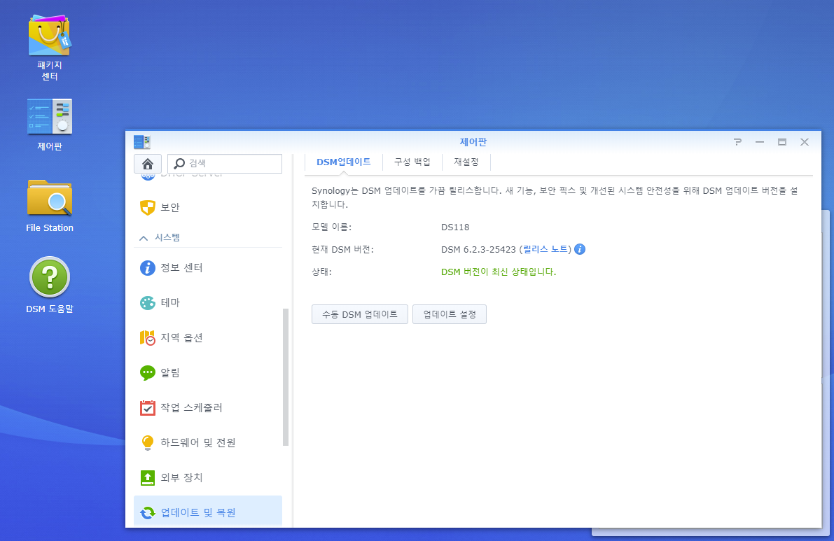 내 DS118에는 아직 자동 업데이트가 적용되어 있진 않은데, 곧 적용되지 않나 싶음. 업데이트 후에는 재시작필요.