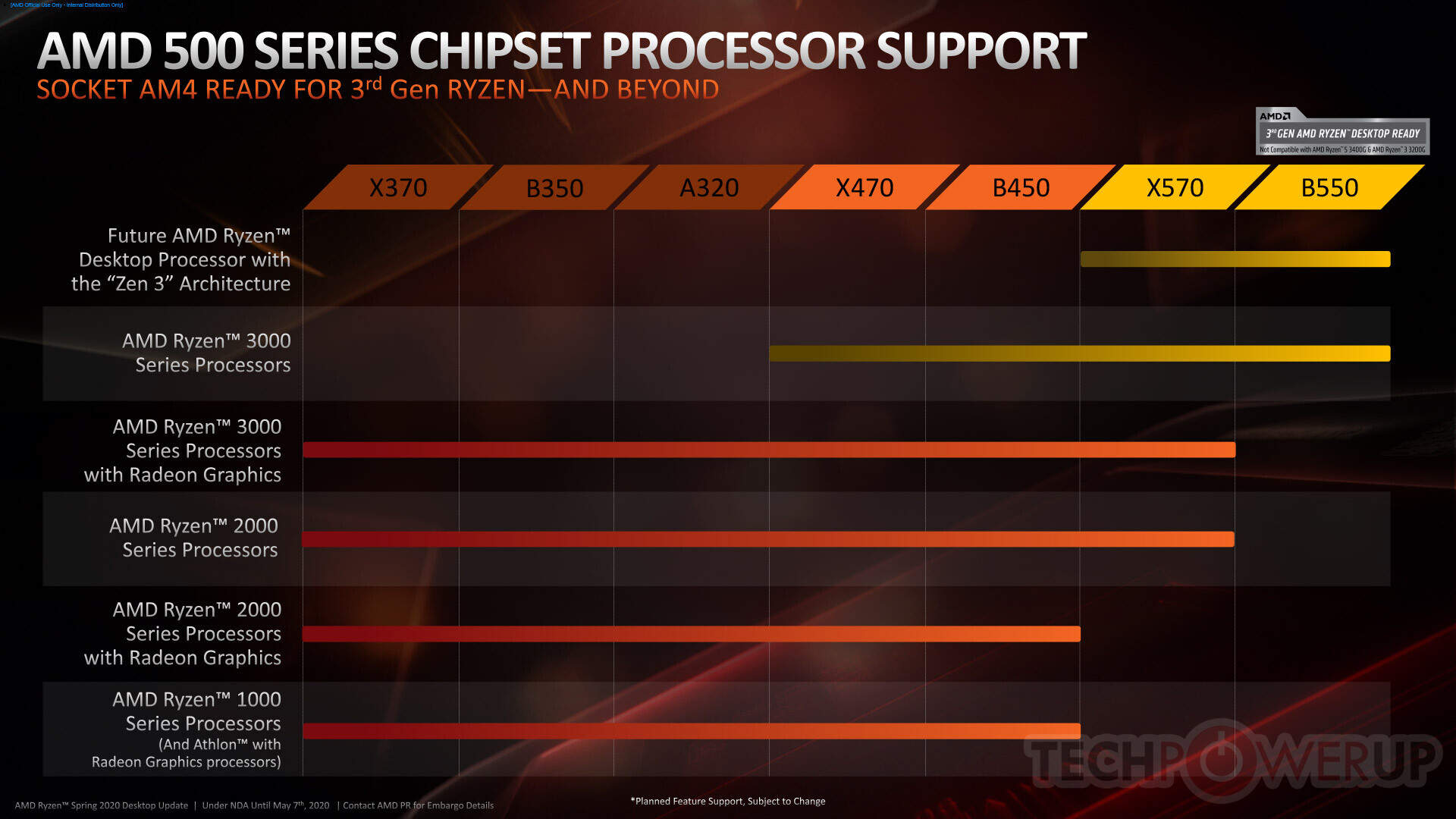 TPU에 따르면 AMD가 Ryzen 3 3100/3300X를 발표하면서 같이 발표한 정보에 Zen3 아키텍처를 사용하는 4세대 데스크톱 Ryzen 프로세서는 AMD 500 시리즈 이후 칩세에서만 사용할 수 있을 것이라 전했습니다. 2020년까지 호환될 것이라 생각하고 프리미엄 AM4(X470 등) 머더보드를 구매했던 사람들에겐 조금 충격적일 수 있는 소식이네요.
