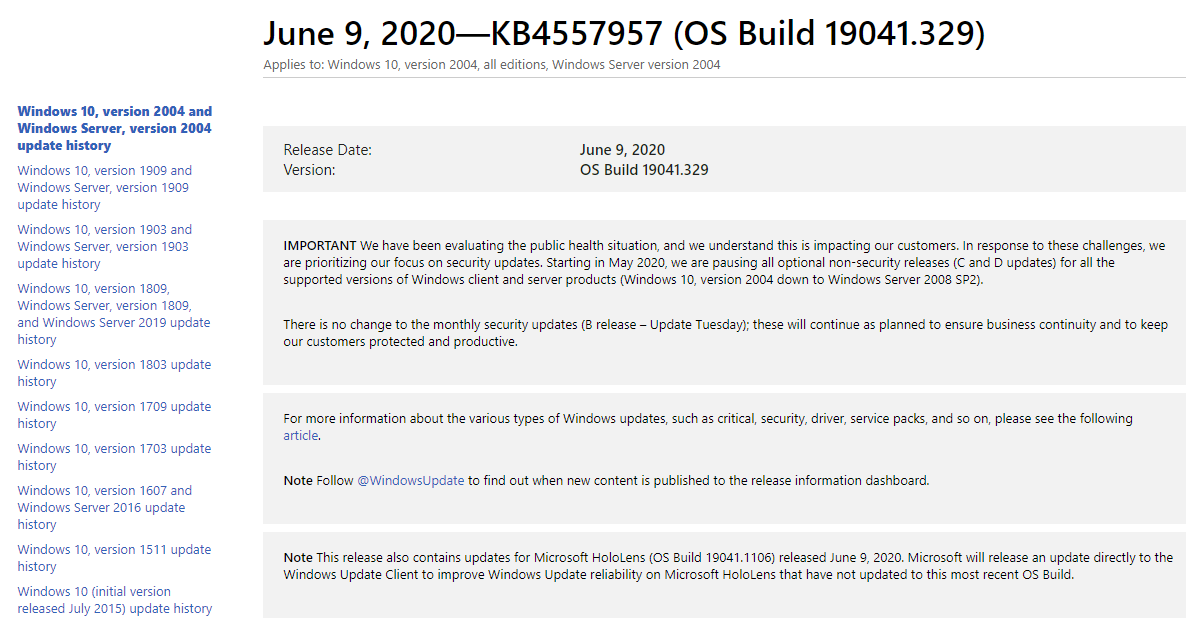- https://support.microsoft.com/en-us/help/4557957/windows-10-update-kb4557957