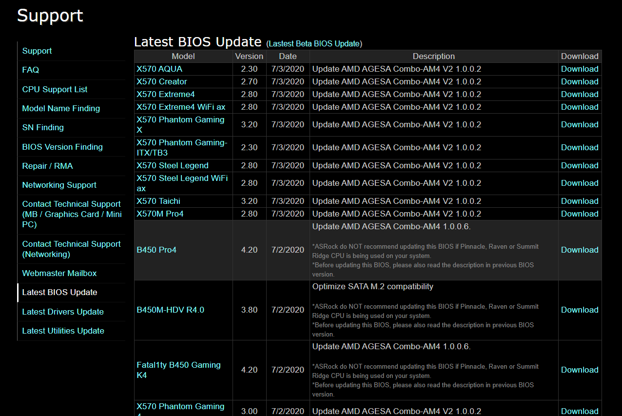 ASRock, AGESA 1.0.0.6/Combo V2 1.0.0.2 업데이트 시작 2020.07.04 01:56 PC.Div.Soft/Driver.Firmware 반응형 ASRock이 MSI, GIGABYTE에 이어 자사 일부 보드에 AGESA Combo-AM4 1.0.0.6 기반의 BIOS 업데이트 및 500시리즈 보드용AGESA Combo-AM4 V2 1.0.0.2 기반의 업데이트를 진행하고 있습니다. ASRock 보드 사용하시는 분들이라면 한번 체크해 보세요. X470 계열은 아직인 것 같고, B450 계열에서 먼저 업데이트가 진행되는 것 같네요. 반응형 공유하기 게시글 관리 Klein Berry 'PC.Div.Soft > Driver.Firmware' 카테고리의 다른 글 ASRock DESK Mini A300 베타 바이오스 업데이트 (0) 2020.07.04 삼성 오디세이 G7/G9모니터 펌웨어 업데이트 (2) 2020.06.24 Creative Sound BlasterX G6 펌웨어 업데이트 (0) 2020.06.23 댓글 공유하기 다른 글 댓글 이 글 공유하기 구독하기 구독하기 카카오톡 카카오톡 라인 라인 트위터 트위터 Facebook Facebook 카카오스토리 카카오스토리 밴드 밴드 네이버 블로그 네이버 블로그 Pocket Pocket Evernote Evernote 다른 글 삼성전자, NVME Driver 3.3 업데이트 삼성전자, NVME Driver 3.3 업데이트 2020.07.06 ASRock DESK Mini A300 베타 바이오스 업데이트 ASRock DESK Mini A300 베타 바이오스 업데이트 2020.07.04 삼성 오디세이 G7/G9모니터 펌웨어 업데이트 삼성 오디세이 G7/G9모니터 펌웨어 업데이트 2020.06.24 Creative Sound BlasterX G6 펌웨어 업데이트 Creative Sound BlasterX G6 펌웨어 업데이트 2020.06.23 다른 글 더 둘러보기