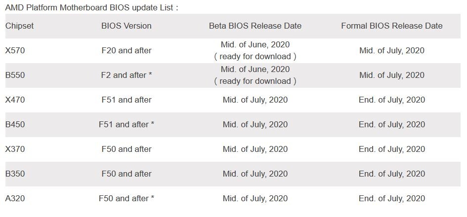 최신 500시리즈 BIOS(베타)는 GIGABYTE의 X570/B550 칩셋 기반의 머더보드에, X470/B450 등의 머더보는 올 7월 중순 이후 지속적으로 업데이트가 진행될 것이라고 하니 해당 보드 사용자들은 업데이트를 잘 체크해 보시기 바랍니다.