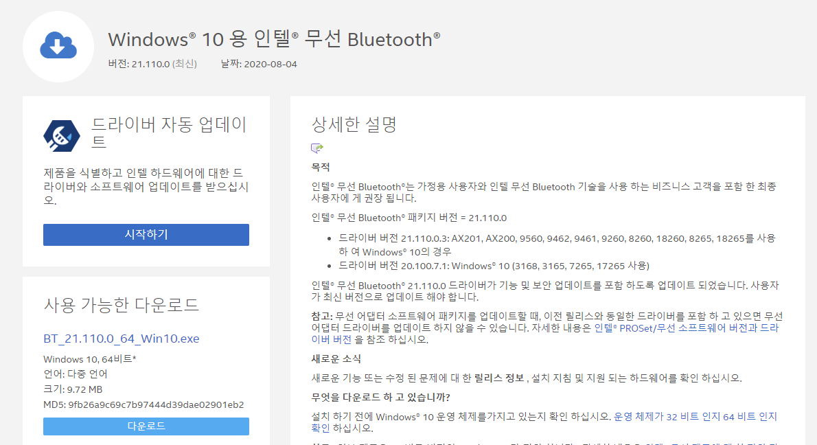 Intel 무선 블루투스 소프트웨어 및 드라이버