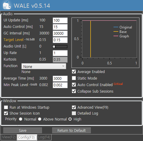 UI는 직관적이긴 하고 세련되었다고는 보기 힘든데 일단 기능 구현도는 되게 좋음. 다만 일부 미디어 재생 프로그램에서 자동 음량 제어를 해뒀다면 가끔 소리가 틱하는 경우 있음. 설치 후 실행하면 트레이에 뜨고, 이를 닫으면 프로그램은 자동으로 종료됨. 사용법은 별 다른 거 없고 Target 에서 원하는 볼륨 수준으로 슬라이더 조정해주면 경고메시지 등이 자동으로 제어됨.