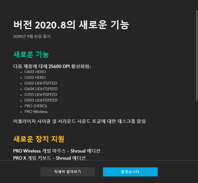 GHUB 소프트웨어 업데이트로 무료로 사용할 수 있으며, 지원되는 제품은 G903 HERO / G502 LIGHTSPEED / PRO Wireless / G703 HERO / G604 / G502 HERO / G403 HERO / PRO 제품이라고 합니다.