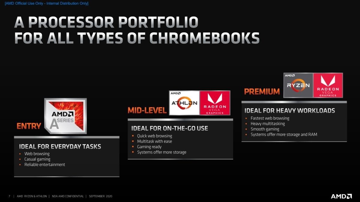 TPU에 따르면 AMD가 Chromebook 플랫폼용 AMD Ryzen 모바일 프로세서 및 AMD Athlon 모바일 프로세서를 발표했다고 합니다. 이전 세대(브리스톨릿지) 대비 최대 178% 빠른 웹 브라우징 경험을 제공한다고 하네요. Google과 공동으로 설계된 AMD Ryzen 및 Athlon 3000 C시리즈 모바일 프로세서 라인업은 2020년 4분기에 출시되는 Acer/ASUS/HP/Lenovo에서 출시되는 Zen 아키텍처 기반의 Chromebook에 탑재된다고 합니다.