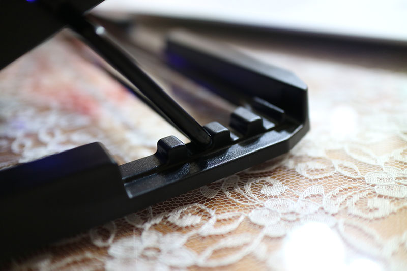 바람 소리는 그냥 좀 스륵스륵나는 정도지만 풍절음에 예민하다면 조금 거슬림. 근데 별도 GPU 달린 노트북 쓴다면 그 쿨러 소리에 다 묻혀버릴 정도긴 함. 후면에 USB(2.0) 2포트 있는데 여기 아무대나 연결하면 USB 전원으로 팬 작동하고, 팬+LED를 끌 수 있고, 바람 세기(소음)와 LED 밝기도 제어가 가능하다(큰 차이는 안나는 듯). 근데 가격대가 가격대여서 그런가 허브 부분은 좀 꼽거나 뺄 때 조심해야 겠다 싶음. 케이블도 얇아 보이니 허브로 쓰긴 좀 미묘할 것 같고. 베어링 볼 돌아가는 소리 안 들리는 거 보면 슬리브 베어링인 것 같은데 일단 전반적인 마감은 가격대비 상당히 준수한 편. 여기저기 거친곳도 없고. 꽉 잡아주는 느낌은 없지만 그렇다고 툭툭 밀리거나 고정이 풀리거나 하지도 않음.