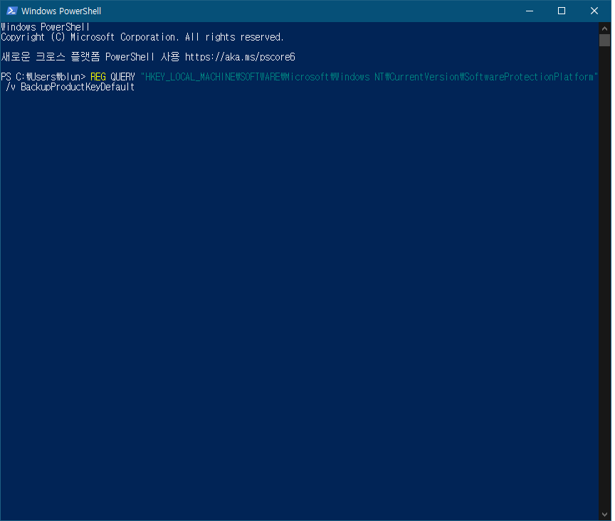 레지스트리 경로는(Ctrl+F 눌러서 BackupProductKeyDefault 검색해도 됨)