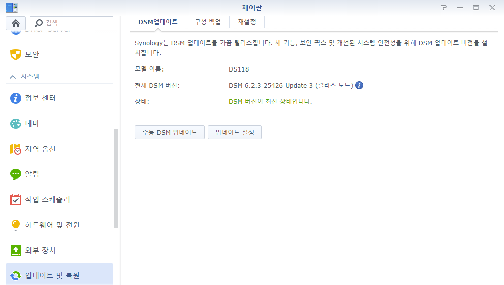 시놀리지에서 DSM 6.2.3-25426의 세번째 마이너 업데이트를 출시했습니다. 자세한 업데이트 내역은 알 수 없지만 원격 코드 실행 취약점 관련해서 패치가되었다고 하네요. 관리 UI내에서도 가능하고, 수동으로 업데이트하는 것도 가능합니다.