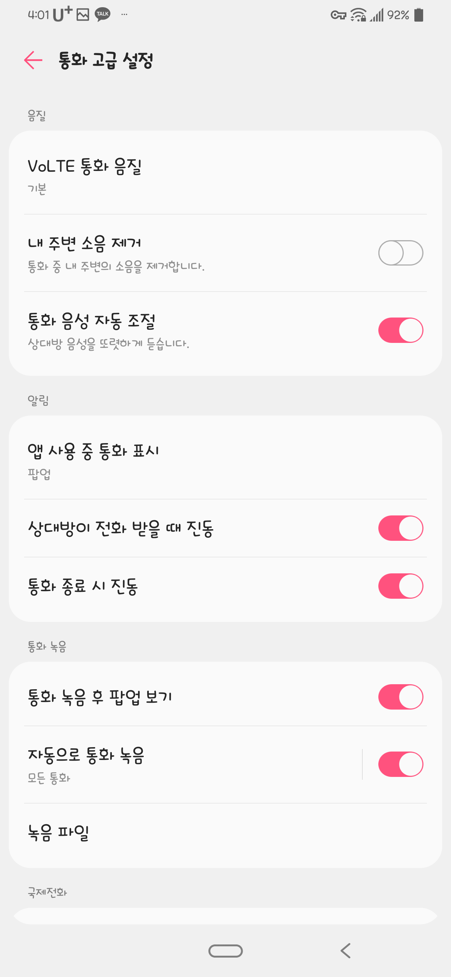 피쳐폰이나 옵티머스 LTE 때도 있었던 설정인 만큼 지금에서도 잘 동작하지만, 이 기능을 켜면 상대방이 내 목소리의 감도가 멀리 있다고 느끼고는 함. 많은 사람들이 그렇게 느끼더라; 요즘 VoLTE 통화 품질이 상당히 좋아진만큼 더 그렇게 느껴질지도.
