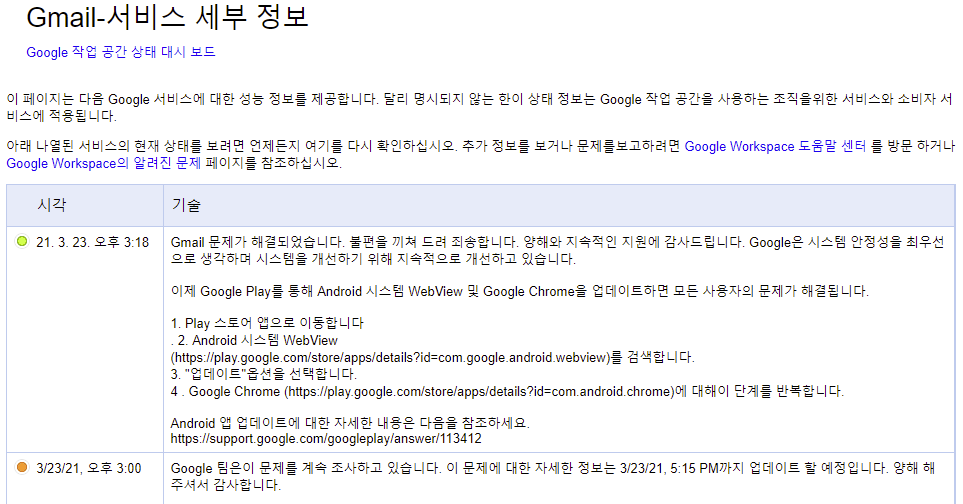 Android 앱 충돌을 일으켰던 WebView 문제 해결 2021.03.23 19:05 ETC.Mobile/News.Security 반응형 Android System WebView의 결함으로 이를 활용하는 Gmail 등 각종 Android 앱이 충돌했던 현상을 23일 15시를 기점으로 업데이트를 배포했다고 합니다. 웹뷰 말고 크롬 브라우저 역시 같이 업데이트되었으니 같이 업데이트하길 권장한다고 하니 참조하세요. 반응형 공유하기 게시글 관리 Klein Berry 'ETC.Mobile > News.Security' 카테고리의 다른 글 Microsoft, Android/iOS에서 Cortana 앱 종료 (0) 2021.04.01 갑작스런 안드로이드 앱 응답 없음 현상, 안드로이드 시스텝 웹 뷰 업데이트 제거필요 (0) 2021.03.23 Google Chrome 브라우저, 자동 자막 기능 구현(영어만) (0) 2021.03.20 댓글 공유하기 다른 글 댓글 이 글 공유하기 구독하기 구독하기 카카오톡 카카오톡 라인 라인 트위터 트위터 Facebook Facebook 카카오스토리 카카오스토리 밴드 밴드 네이버 블로그 네이버 블로그 Pocket Pocket Evernote Evernote 다른 글 LG전자 휴대폰 사업 종료 LG전자 휴대폰 사업 종료 2021.04.05 Microsoft, Android/iOS에서 Cortana 앱 종료 Microsoft, Android/iOS에서 Cortana 앱 종료 2021.04.01 갑작스런 안드로이드 앱 응답 없음 현상, 안드로이드 시스텝 웹 뷰 업데이트 제거필요 갑작스런 안드로이드 앱 응답 없음 현상, 안드로이드 시스텝 웹 뷰 업데이트 제거필요 2021.03.23 Google Chrome 브라우저, 자동 자막 기능 구현(영어만) Google Chrome 브라우저, 자동 자막 기능 구현(영어만) 2021.03.20 다른 글 더 둘러보기