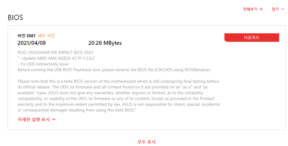 **성능적인 부분은 사실 결과 확인이 넘 적어 미묘한데, 일단 베타버전인 만큼 성능은 일정하지 않을 수 있다는 점 유의하시고 자신의 책임 하에 사용하길 권합니다. 메모리 OC 성능은 전반적으로 떨어진 것 같습니다. 캐시 레이턴시도 좀 늘고, 일부 유저는 늘 있긴 하지만 최대 OC폭도 소폭 줄어든 것 같고요.
