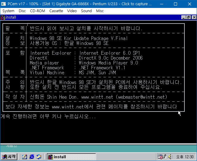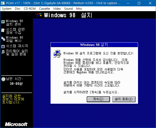 PCem Win98SE 설치하기