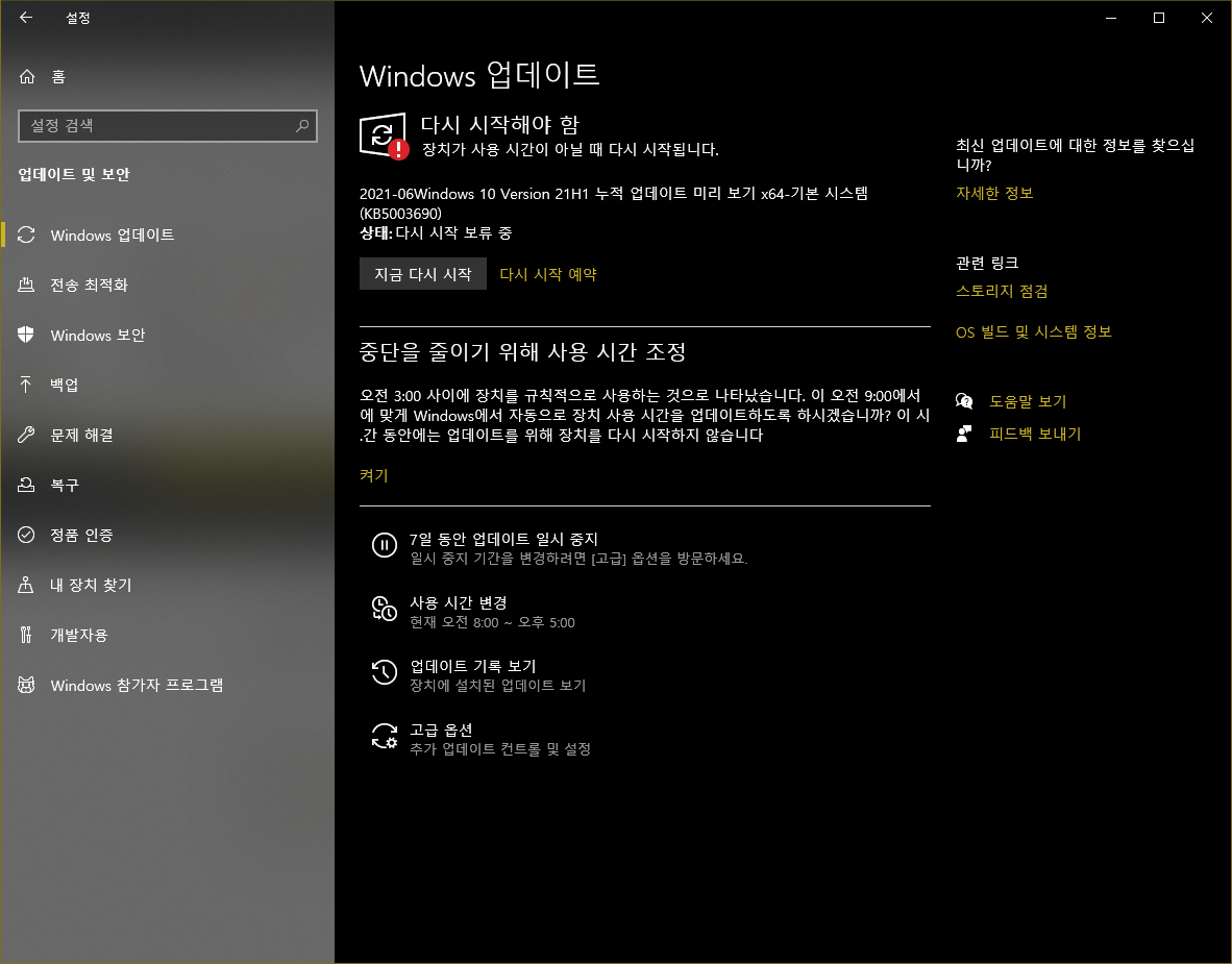 윈도 업데이트를 통해 선택 업데이트로 KB5003690이 배포되었습니다(21H2, v20H2/v2004). 이전(3월경-KB500842) 업데이트에서 발생한 게임 시의 성능 하락 문제, FPS 저하, 뉴스 및 관심사의 흐릿한 텍스트 문제 등도 해결되었고, 일본어 IME 사용 중 작동이 중지되던 현상, PIN 관련 문제, Dolby Digital 오디오를 5.1채널 환경에서 재생 시 고역 노이즈 발생하던 문제 등이 해결되었으니 업데이트를 챙겨보세요.
