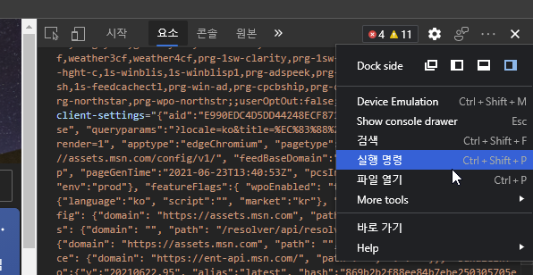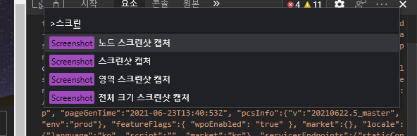 캡쳐하는 방법은 생각보다 간단하다. Ctrl +Shift + I 눌러서 개발자 도구 > 더보기(...) 눌러서 실행 명령(Ctrl + Shift +P) 눌러서 screen(엣지는 스크린이라고 입력해도 됨)이라고 입력하면 전체 크기(full size) 스크린샷 캡처를 사용할 수 있다.