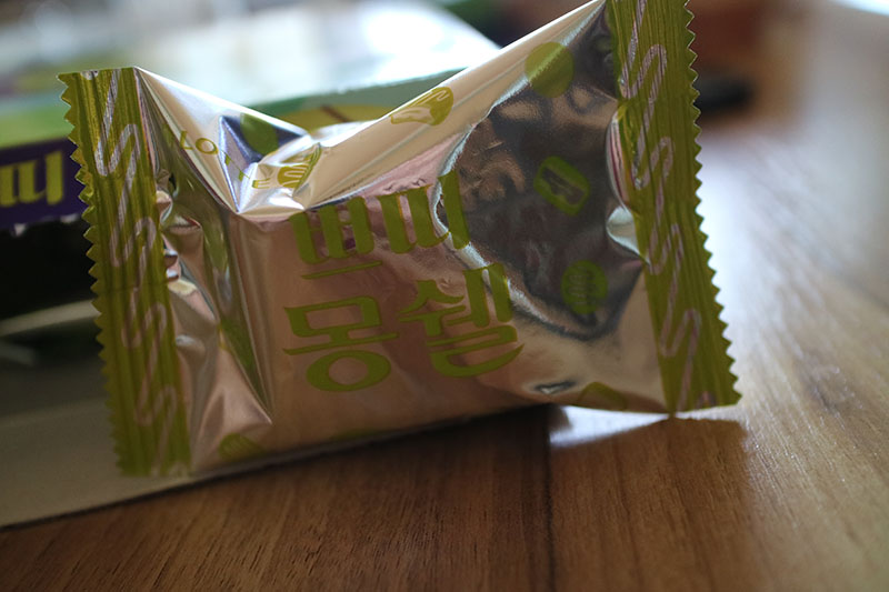 뜯으면 포도쉐이크같은 냄새 확~ 풍겨온다. 냄새는 매력적. 맛은, 솔직히 좀 내 입맛에는 별로였다. 몽쉘의 겉은 초코같이 딱딱한 부분인데, 이게 그 뭐지, 옛날에 케이크 장식...? 이라고 해야 하나 그 좀 귀여운 모양의 그거(이거 알면 이제 아재려나;) 얇게 져며 먹는 맛. 생크림 케이크라고는 하지만 좀 뻑뻑하긴 하고. 그냥 몽쉘이 더 낫지 않나 싶음. 아니 요즘 몽쉘 자체를 안먹어 봐서 그런건가.... 향은 머스캣향인데 맛은 그냥 좀 텁텁한 빵 먹는 느낌. 상큼한 맛을 기대했었기에 그런지 몰라도 개인적인 느낌은 그냥 크림빵 맛...이었다. 두 개 뜯어 먹어봤는데 둘 다 상큼함과는 좀 거리가 있었음.