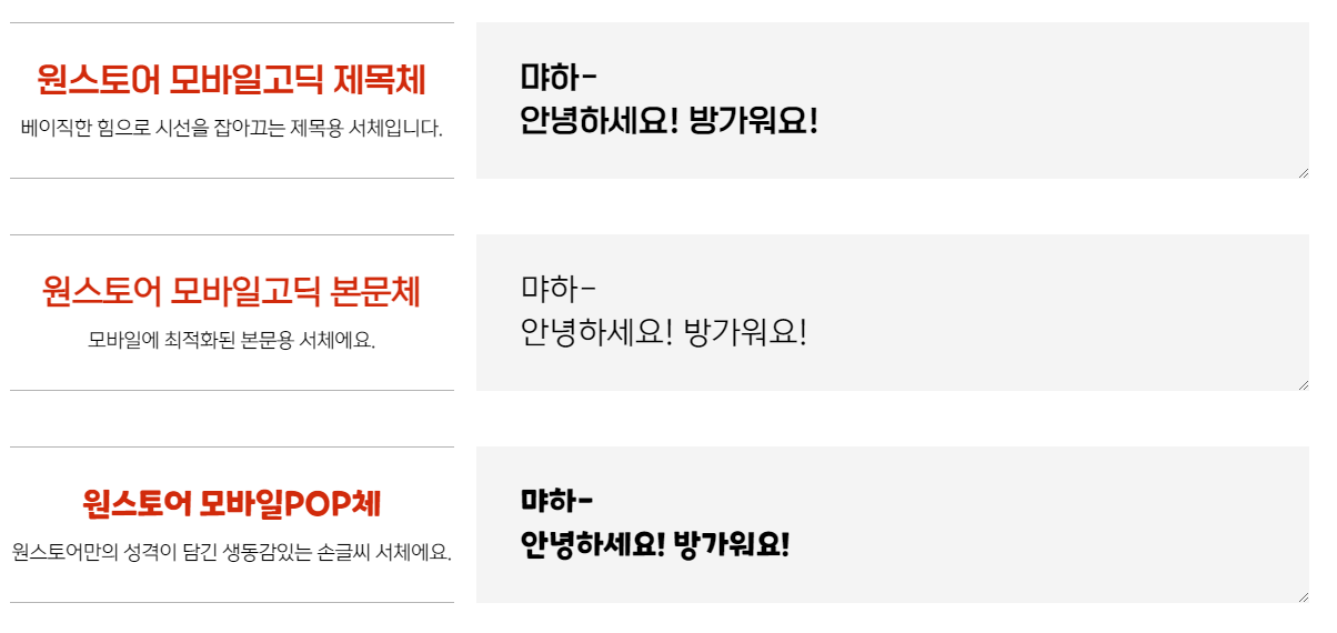 원스토어 모바일고딕 제목/본문/POP 체 2021.07.06 22:39 Web.World/Tip.Cad.De.3D.Font 반응형 글꼴의 유료 판매, 수정, 재배포 제외 상업적 용도 사용 가능. 이쁘다. 여기서 다운로드 합시다. 반응형 공유하기 게시글 관리 Klein Berry 'Web.World > Tip.Cad.De.3D.Font' 카테고리의 다른 글 Pretendard 폰트 (0) 2021.07.06 무료로 이용가능한 벡터 아이콘팩 사이트 (0) 2021.06.16 일러스트레이터) 눈금자 단위 변경 (0) 2021.06.06 댓글 공유하기 다른 글 댓글 이 글 공유하기 구독하기 구독하기 카카오톡 카카오톡 라인 라인 트위터 트위터 Facebook Facebook 카카오스토리 카카오스토리 밴드 밴드 네이버 블로그 네이버 블로그 Pocket Pocket Evernote Evernote 다른 글 어도비 일러스트레이터, 저장 시 파일 포함하기 어도비 일러스트레이터, 저장 시 파일 포함하기 2021.07.11 Pretendard 폰트 Pretendard 폰트 2021.07.06 무료로 이용가능한 벡터 아이콘팩 사이트 무료로 이용가능한 벡터 아이콘팩 사이트 2021.06.16 일러스트레이터) 눈금자 단위 변경 일러스트레이터) 눈금자 단위 변경 2021.06.06 다른 글 더 둘러보기