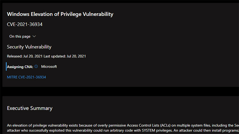 Windows 10 권한 상승 제로 데이 취약점 2021.07.23 03:07 PC.Div.Soft/Windows.Office 반응형 Microsoft가 윈도 10의 권한 상승 취약점 CVE-2021-36934에 대한 취약점 정보를 보고했습니다. CERT/CC 등의 보안 연구원에 따르면 이 취약점은 윈도 10 버전 1809 이후 버전부터 영향을 받는다고 하며, 아직까지 공식적으로 알려진 영향을 받는 범위나 패치 등은 없다고 하니 참조하세요. 반응형 공유하기 게시글 관리 Klein Berry 'PC.Div.Soft > Windows.Office' 카테고리의 다른 글 Microsoft, 7월 패치 적용 후 일부 프린터 올바르게 동작하지 않던 문제 수정 (0) 2021.07.29 Windows 11, 빌드 22000.65 배포 (0) 2021.07.11 Windows 10, PrintNightmare 패치 (0) 2021.07.07 댓글 공유하기 다른 글 댓글 이 글 공유하기 구독하기 구독하기 카카오톡 카카오톡 라인 라인 트위터 트위터 Facebook Facebook 카카오스토리 카카오스토리 밴드 밴드 네이버 블로그 네이버 블로그 Pocket Pocket Evernote Evernote 다른 글 많은 버그를 잡은 윈도10 업데이트 미리보기: KB5004296 많은 버그를 잡은 윈도10 업데이트 미리보기: KB5004296 2021.07.31 Microsoft, 7월 패치 적용 후 일부 프린터 올바르게 동작하지 않던 문제 수정 Microsoft, 7월 패치 적용 후 일부 프린터 올바르게 동작하지 않던 문제 수정 2021.07.29 Windows 11, 빌드 22000.65 배포 Windows 11, 빌드 22000.65 배포 2021.07.11 Windows 10, PrintNightmare 패치 Windows 10, PrintNightmare 패치 2021.07.07 다른 글 더 둘러보기
