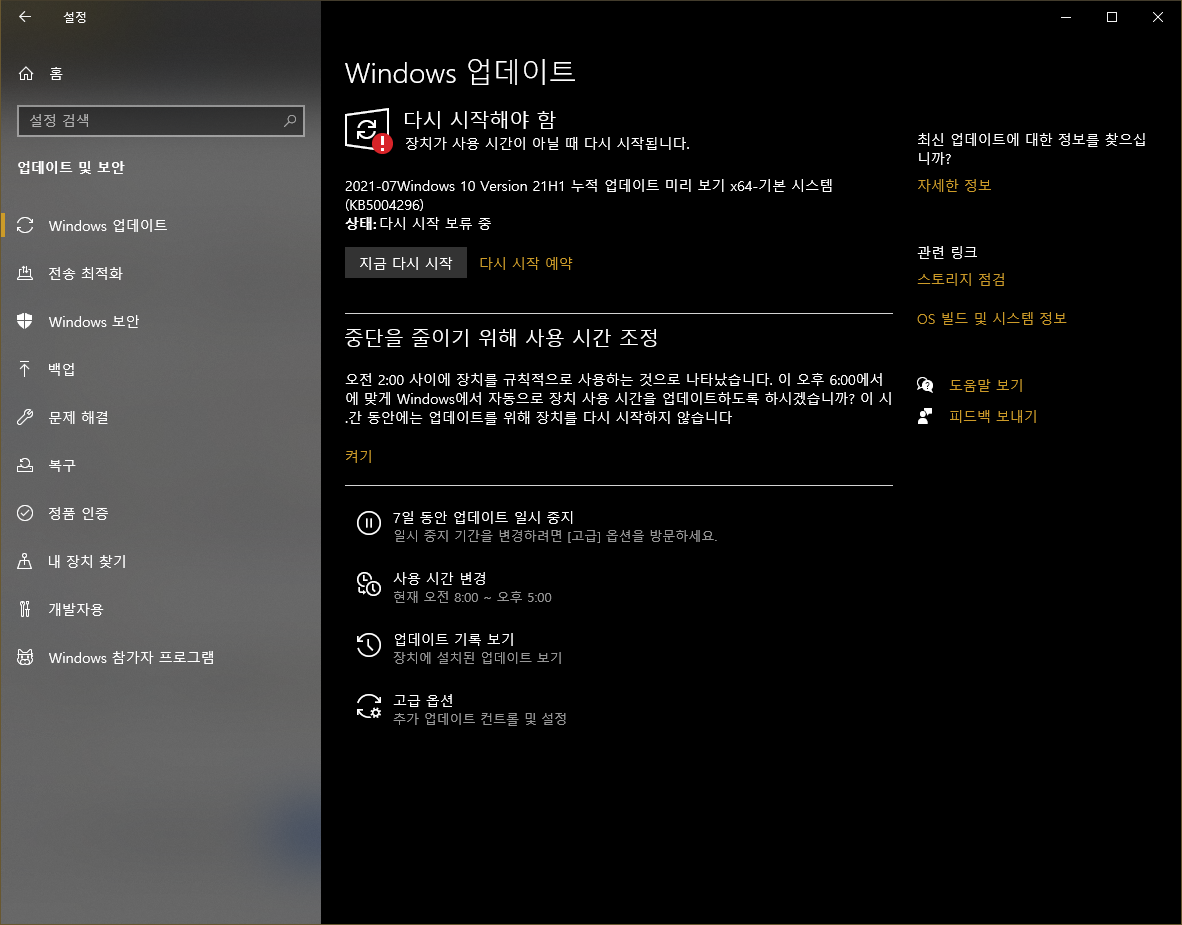 많은 버그를 잡은 윈도10 업데이트 미리보기: KB5004296 2021.07.31 00:15 PC.Div.Soft/Windows.Office 반응형 Microsoft가 KB5004296을 출시했습니다. MS가 밝힌 정보에 따르면 게임 성능이 하락하는 경우가 있던 문제, 게임컨트롤러와 관련된 문제 등이 해결되었다고 하네요. 설치는 업데이트를 카탈로그 등을 통해서도 가능하지만 설정 > 업데이트 및 보안 > Windows 업데이트에서 선택 업데이트로 설치 가능하니 참조하세요. 반응형 공유하기 게시글 관리 Klein Berry 'PC.Div.Soft > Windows.Office' 카테고리의 다른 글 Windows 10 IP 빌드 19044.1200(21H2) 발표 (0) 2021.08.19 Microsoft, 7월 패치 적용 후 일부 프린터 올바르게 동작하지 않던 문제 수정 (0) 2021.07.29 Windows 10 권한 상승 제로 데이 취약점 (0) 2021.07.23 댓글 공유하기 다른 글 댓글 이 글 공유하기 구독하기 구독하기 카카오톡 카카오톡 라인 라인 트위터 트위터 Facebook Facebook 카카오스토리 카카오스토리 밴드 밴드 네이버 블로그 네이버 블로그 Pocket Pocket Evernote Evernote 다른 글 Windows 11 IP 새로운 빌드 발표, 시계 앱 등 개선 Windows 11 IP 새로운 빌드 발표, 시계 앱 등 개선 2021.08.23 Windows 10 IP 빌드 19044.1200(21H2) 발표 Windows 10 IP 빌드 19044.1200(21H2) 발표 2021.08.19 Microsoft, 7월 패치 적용 후 일부 프린터 올바르게 동작하지 않던 문제 수정 Microsoft, 7월 패치 적용 후 일부 프린터 올바르게 동작하지 않던 문제 수정 2021.07.29 Windows 10 권한 상승 제로 데이 취약점 Windows 10 권한 상승 제로 데이 취약점 2021.07.23 다른 글 더 둘러보기