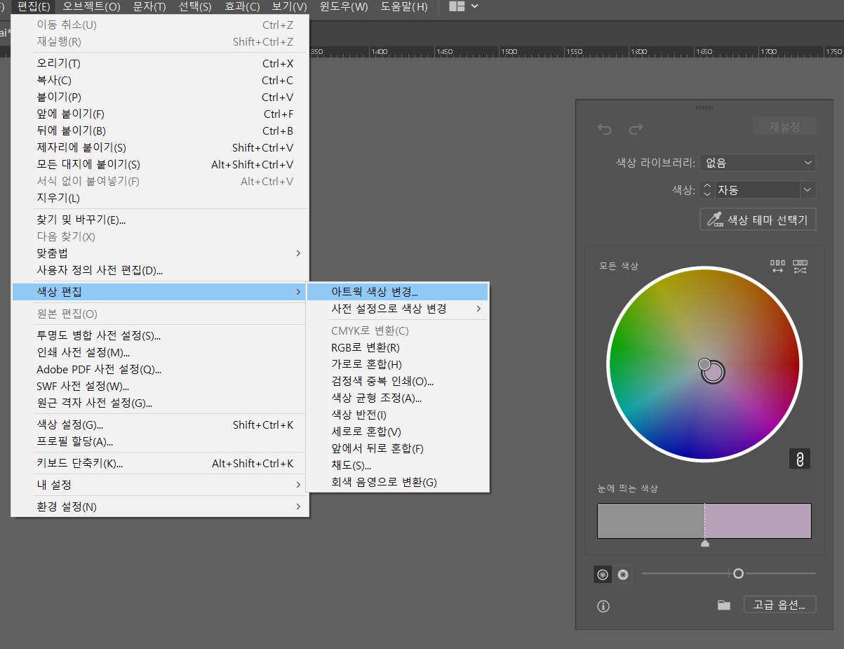 일러스트레이터) 흑백 변환 및 색상 변경하기 2021.08.14 01:10 Web.World/Tip.Cad.De.3D.Font 반응형 일러스트레이터에서 이미지 추적이나 이런거 쓴 뒤, 색상 보정이나 흑백으로 만들거나 할때 유용함. 편집할 객체 선택하고 편집(E) > 색상 편집 > 아트웍 색상 변경... 또는 프리셋 중에서 필요한 거 선택해서 사용하도록 합시다. 그리고 흑백으로 변환은 색상 균형 조정을 눌러서 색상 모드를 회색 음영으로 두고 조정하면 편하니 참조합시다. 반응형 공유하기 게시글 관리 Klein Berry 'Web.World > Tip.Cad.De.3D.Font' 카테고리의 다른 글 포토샵) 혼합 옵션 적용 색상 범위 조정하기 (0) 2021.08.14 무료로 사용가능한 먼셀 색상표 RGB 변환 사이트 (0) 2021.08.13 포토샵 CC 최근 작업 내역 삭제하기 (0) 2021.08.04 댓글 공유하기 다른 글 댓글 이 글 공유하기 구독하기 구독하기 카카오톡 카카오톡 라인 라인 트위터 트위터 Facebook Facebook 카카오스토리 카카오스토리 밴드 밴드 네이버 블로그 네이버 블로그 Pocket Pocket Evernote Evernote 다른 글 포토샵) LUT 파일 적용하기 포토샵) LUT 파일 적용하기 2021.08.14 포토샵) 혼합 옵션 적용 색상 범위 조정하기 포토샵) 혼합 옵션 적용 색상 범위 조정하기 2021.08.14 무료로 사용가능한 먼셀 색상표 RGB 변환 사이트 무료로 사용가능한 먼셀 색상표 RGB 변환 사이트 2021.08.13 포토샵 CC 최근 작업 내역 삭제하기 포토샵 CC 최근 작업 내역 삭제하기 2021.08.04 다른 글 더 둘러보기