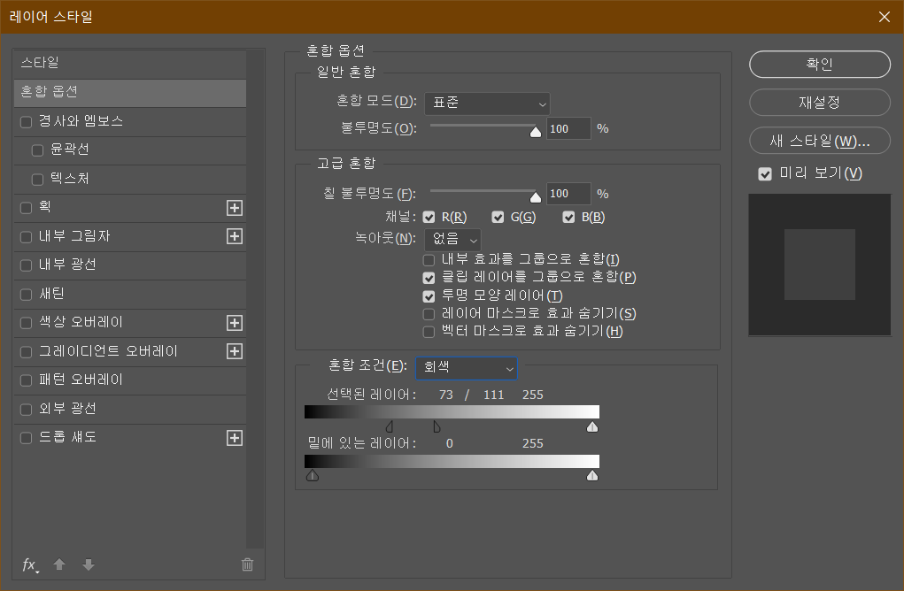 포토샵) 혼합 옵션 적용 색상 범위 조정하기 2021.08.14 01:26 Web.World/Tip.Cad.De.3D.Font 반응형 매일같이 포토샵을 만지는 사람도 이런 기능이 있는지 모르는 사람도 있는 것 같고, 사실 그다지 쓸 일이 없을 수도 있긴 한데... 채도 조정이나 사진 편집을 하거나, 조명 관련 마무리 작업을 할 때에 쓰게 되면 도움이 된다. 레이어 스타일(혼합 옵션 설정 창)에서 혼합 조건을 조정해주면 자기가 적용하고 싶은 색상/채도 범위에만 적용이 가능하니 참조합시다. 혼합 조건 막대 아래의 표시자를 나누는 방법은 키보드의 ALT 키 누르면서 드래그고요. 반응형 공유하기 게시글 관리 Klein Berry 'Web.World > Tip.Cad.De.3D.Font' 카테고리의 다른 글 포토샵) LUT 파일 적용하기 (0) 2021.08.14 일러스트레이터) 흑백 변환 및 색상 변경하기 (0) 2021.08.14 무료로 사용가능한 먼셀 색상표 RGB 변환 사이트 (0) 2021.08.13 댓글 공유하기 다른 글 댓글 이 글 공유하기 구독하기 구독하기 카카오톡 카카오톡 라인 라인 트위터 트위터 Facebook Facebook 카카오스토리 카카오스토리 밴드 밴드 네이버 블로그 네이버 블로그 Pocket Pocket Evernote Evernote 다른 글 티스토리 스킨 배포 블로그 티스토리 스킨 배포 블로그 2021.08.19 포토샵) LUT 파일 적용하기 포토샵) LUT 파일 적용하기 2021.08.14 일러스트레이터) 흑백 변환 및 색상 변경하기 일러스트레이터) 흑백 변환 및 색상 변경하기 2021.08.14 무료로 사용가능한 먼셀 색상표 RGB 변환 사이트 무료로 사용가능한 먼셀 색상표 RGB 변환 사이트 2021.08.13 다른 글 더 둘러보기