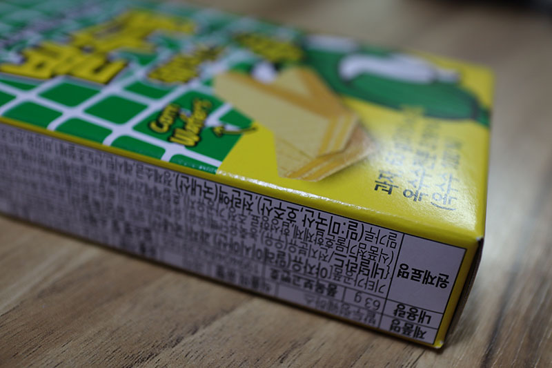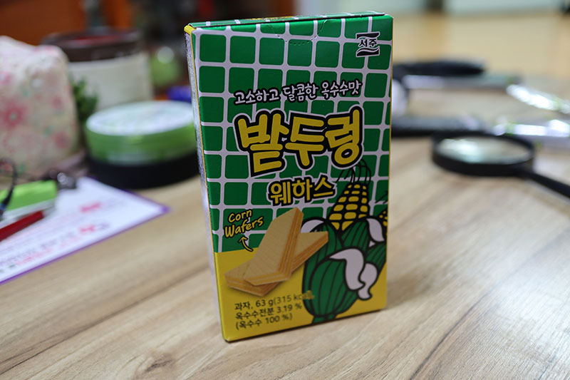 서주 제품. 아이스크림 그 뭐지 옥수수 모양으로 생긴 거, 거기서 나는 향이 난다. 인공적....인 옥수수향?이라고 해야 하나. 나쁘진 않고, 옛날 밭두렁 과자 향보다는 그쪽 향. 그리고 맛은 달콤 고소, 타 웨하스보다 조금 더 단 편이다. 당연하겠지만(....) 옥수수 크림빵의 옥수수 크림이랑 바삭한 웨하스 껍질이 어우러지고, 입안에 퍼지는 향도 개인적은 취향이라 괜찮았음.