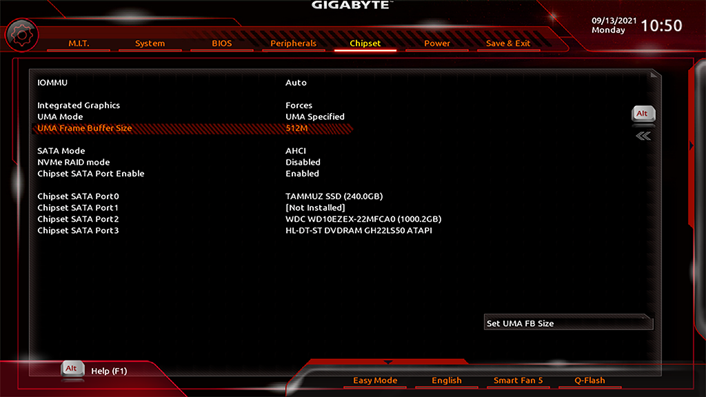 아무튼, 레이븐 릿지 등의 AMD APU 사용 시 비디오 메모리 설정은 GIGABYTE 머더보드 기준 UEFI 내 Chipset > Intergrated Graphics의 값을 Force로 변경(PgUp/PgDn키로 가능)하고, UMA Mode를 UMA Specified로 변경한 뒤, 아래의 UMA Frame Buffer Size를 변경해주면 됨(변경 후에는 Save & Exit에서 저장 후 나가기). 회사 2200G PC에 8GB 단일 메모리 달려 있는데 기본 설정이 2GB나 쳐묵하고 계시길래 바꾸면서 화면 캡쳐 하나 하면서 포스팅.