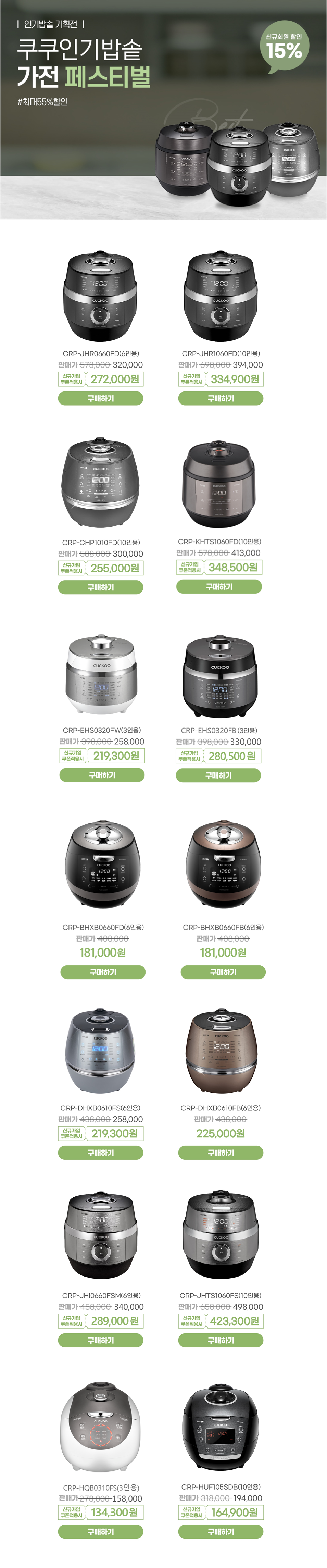 쿠쿠, 밥솥 등 가전 할인 행사 2021.10.07 22:31 Web.World/Trivia 반응형 2021-10-05~2021-11-11까지라고 하고, 이번에 쿠쿠밥솥 사려고 살펴보다 발견. 덕분에 좀 저렴하게 구매한 듯. 홈페이지 첫 회원이면 할인 쿠폰도 주니까 이번 기회에 잘 보고 노려봤던 밥솥 있으면 사보도록 합시다. 홈페이지는 여기. 와 근데 요즘은 밥솥 기본이 6인용이구나. 우리집은 식혜나 이런거도 자주 해먹는 편이라 10인용...;ㅅ; 반응형 공유하기 게시글 관리 Klein Berry 'Web.World > Trivia' 카테고리의 다른 글 엣지/크롬 시작 페이지 변경하기 (0) 2021.10.11 NextCloud Pi, WebDAV 사용하기 (0) 2021.09.13 PC 카카오톡 사진 묶어 보내기 설정하기 (0) 2021.09.13 댓글 공유하기 다른 글 댓글 이 글 공유하기 구독하기 구독하기 카카오톡 카카오톡 라인 라인 트위터 트위터 Facebook Facebook 카카오스토리 카카오스토리 밴드 밴드 네이버 블로그 네이버 블로그 Pocket Pocket Evernote Evernote 다른 글 VScode: PHP executable not found 관련 설정하기 VScode: PHP executable not found 관련 설정하기 2021.10.20 엣지/크롬 시작 페이지 변경하기 엣지/크롬 시작 페이지 변경하기 2021.10.11 NextCloud Pi, WebDAV 사용하기 NextCloud Pi, WebDAV 사용하기 2021.09.13 PC 카카오톡 사진 묶어 보내기 설정하기 PC 카카오톡 사진 묶어 보내기 설정하기 2021.09.13 다른 글 더 둘러보기