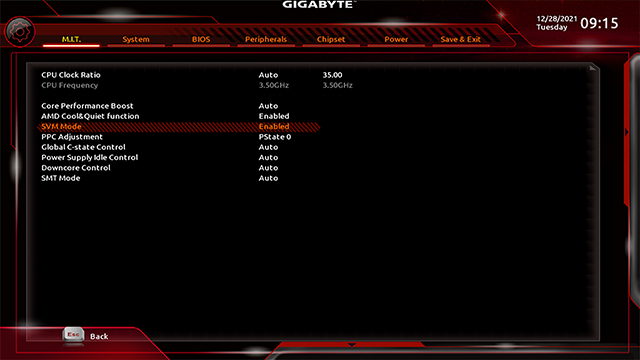 아무튼 CPU 관련 기능이기에 머더보드의 CPU관련 설정에서 가능하다. SVM Mode를 활성화(Enable)해주고 재시작하면 된다.