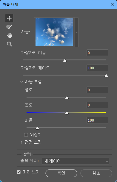 포토샵, 하늘 대체 기능 사용하기 2022.01.17 03:19 Web.World/Tip.Cad.De.3D.Font 반응형 사용법은 간단하다. 버전 업된지 꽤 된 기능인데 우리 사무실서 아무도 안 사용하고 있길래 알려줄겸해서 포스팅. 하늘의 분위기를 바꿔주긴 하는데, 보케효과처럼 가지가 많이 들어간 나무 사이로 보이는 배경이나 달려가는 자동차(흐릿함) 등에는 조금 어색함이 있다. 그게 아니라면 대부분 되게 만족스런 효과가 적용됨. 사용법은 간단하다. 하늘 분위기를 바꿀 사진 열고, 편집 > 하늘 대체(한글 버전 기준)눌러서 맘에 드는 하늘로 적당히 만져주면 OK. 반응형 공유하기 게시글 관리 Klein Berry 'Web.World > Tip.Cad.De.3D.Font' 카테고리의 다른 글 파워포인트 안내선 표시하기 (0) 2022.01.26 오토캐드 글자 자간 조정하기 (0) 2022.01.17 Enscape, 3.2버전 출시 (0) 2021.11.29 댓글 공유하기 다른 글 댓글 이 글 공유하기 구독하기 구독하기 카카오톡 카카오톡 라인 라인 트위터 트위터 Facebook Facebook 카카오스토리 카카오스토리 밴드 밴드 네이버 블로그 네이버 블로그 Pocket Pocket Evernote Evernote 다른 글 윈도11/10, 화면 캡쳐 도구 열기 윈도11/10, 화면 캡쳐 도구 열기 2022.02.14 파워포인트 안내선 표시하기 파워포인트 안내선 표시하기 2022.01.26 오토캐드 글자 자간 조정하기 오토캐드 글자 자간 조정하기 2022.01.17 Enscape, 3.2버전 출시 Enscape, 3.2버전 출시 2021.11.29 다른 글 더 둘러보기
