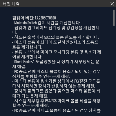 저 마스터 볼륨이 음소거된 상태에서 PC를 재시작하면 장치가 반응하지 않던 문제 수정은 참 오래도 걸렸네요.