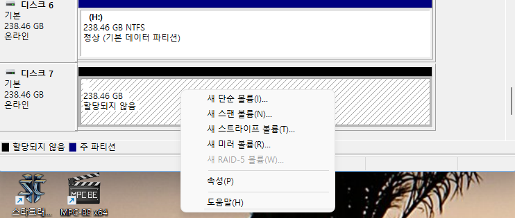 요즘 NVMe SSD 등의 가격하락으로 USB 인클로저 하나 사서 사용하면 편하니까 자주 그러고 있는데, 이번에 여유분 하나 만드려다가 보니 디스크 관리의 기능이 늘어난 듯해서 정리겸 포스팅.