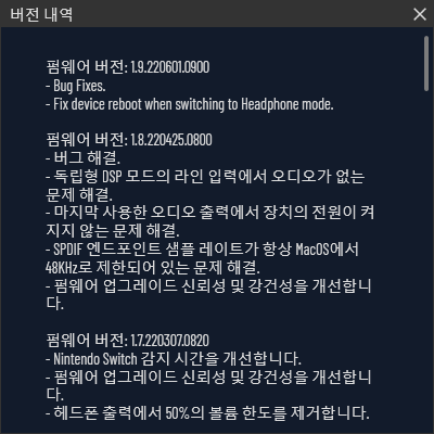 Creative Sound Blaster X3 펌웨어 업데이트 2022.06.20 22:09 PC.Div.Soft/Driver.Firmware 반응형 Creative X3 제품군의 신규 펌웨어가 출시되었습니다. 업데이트 자주하네요. 업데이트 소요시간은 5분 정도이고, 빨간 불이 깜빡깜빡하다 재시작됩니다. 각종 버그 수정 및 헤드폰 모드 변경 시 장치가 재시작되던 문제 수정이라고 하네요. 반응형 공유하기 게시글 관리 Klein Berry 'PC.Div.Soft > Driver.Firmware' 카테고리의 다른 글 HP 15 노트북 PC 15-e3000(Nero 15s) F.05 Rev.A BIOS 업데이트 (0) 2022.06.28 Bose QC(QuietComfort) 45 펌웨어 업데이트 (0) 2022.06.19 ASUS Armoury Crate 업데이트(3.1.4.0) (0) 2022.06.19 댓글 공유하기 다른 글 댓글 이 글 공유하기 구독하기 구독하기 카카오톡 카카오톡 라인 라인 트위터 트위터 Facebook Facebook 카카오스토리 카카오스토리 밴드 밴드 네이버 블로그 네이버 블로그 Pocket Pocket Evernote Evernote 다른 글 AMD 칩셋 드라이버 4.06.10.651 출시 AMD 칩셋 드라이버 4.06.10.651 출시 2022.06.30 HP 15 노트북 PC 15-e3000(Nero 15s) F.05 Rev.A BIOS 업데이트 HP 15 노트북 PC 15-e3000(Nero 15s) F.05 Rev.A BIOS 업데이트 2022.06.28 Bose QC(QuietComfort) 45 펌웨어 업데이트 Bose QC(QuietComfort) 45 펌웨어 업데이트 2022.06.19 ASUS Armoury Crate 업데이트(3.1.4.0) ASUS Armoury Crate 업데이트(3.1.4.0) 2022.06.19 다른 글 더 둘러보기
