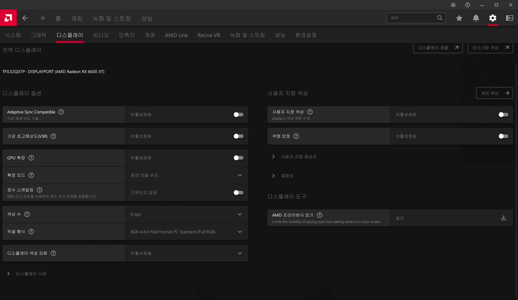 듀얼 모니터에는 버그가 아직 많나보다....하고 여겼는데 이번에 잘 쓰다가 22.6.1올리고 이런 문제가 또 생기더라; 지금까지 해결방법으론 그냥 글카 교체(....)나 모니터 교체, 혹은 드라이버 버전 다운이 대부분 이었는데...아이러니 하게도 최신 Radeon 그래픽카드가 아니라면 윈도 업데이트로 잡히는 구형 드라이버를 사용하는게 일상 생활에 문제가 적은 편이지 않나 싶다.