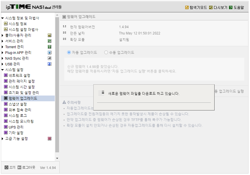 ipTIME NAS dual 시리즈 펌웨어 1.4.98 출시
