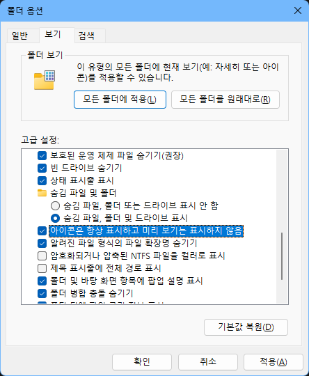 윈도 11이 업데이트되면서 이전 윈도에 비해 폴더 내부의 이미지나 영상을 미리 보여주는 방법이 좀 더 상세하게 되었다. 그래서 처음 윈도11로 업데이트했다면 어어? 싶은 경우도 있지 않나 싶다(특히 큰 아이콘으로 보기 등으로 사용한다면). 공용 PC라면 신경 씁시다.