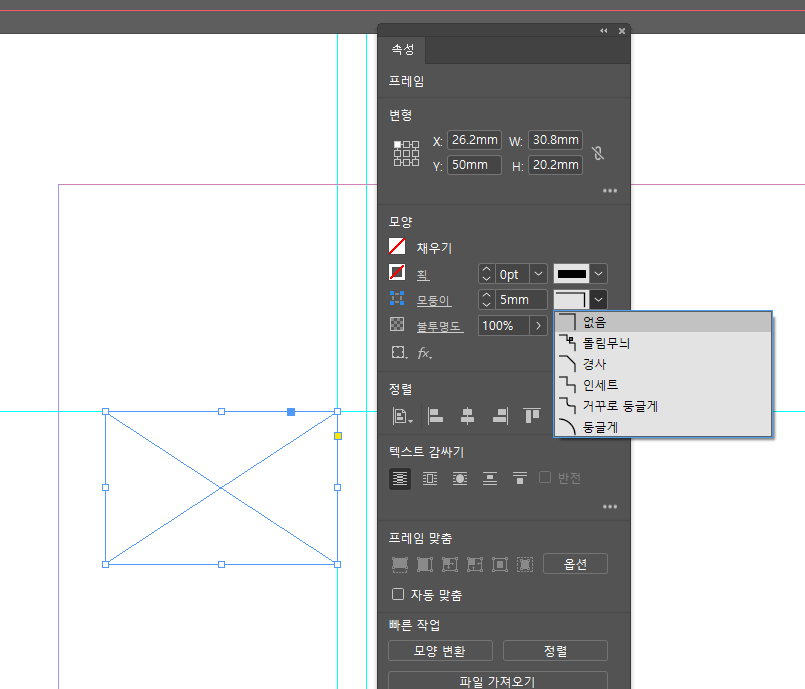 단, 사용하는 인디자인의 버전에 따라 기능이 제한되는 경우 있으니 참조합시다. 가령 CS6 버전에서는 각 모퉁이마다 다르게 편집할 수 있는 기능은 없음.