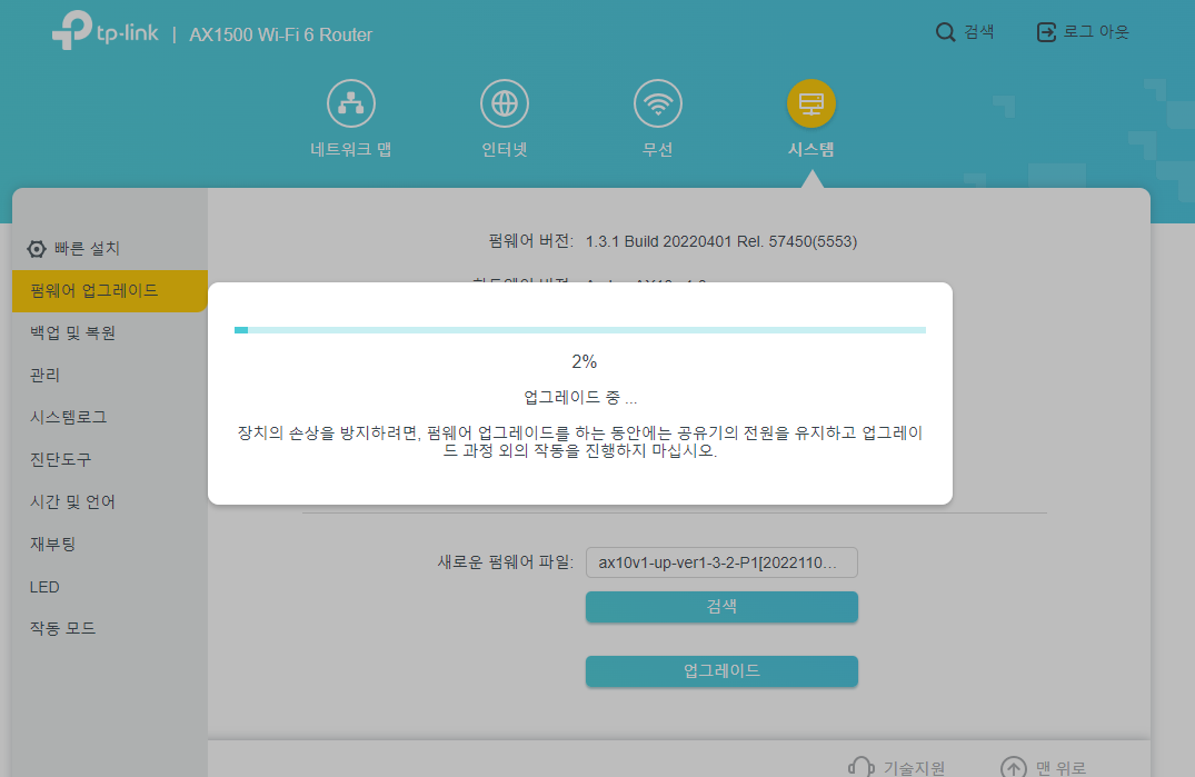 TP-LINK AX10 공유기 펌웨어 업데이트(1.3.2 Build 20221103 Rel. 56977(5553) 2022.11.23 09:56 ETC.Mobile/Router.Wireless 반응형 TP-LINK AX10 공유기의 신규 펌웨어가 등록되었습니다. 자동 업데이트는 안되고, 수동으로 업데이트해야 하네요. 보안 강화가 주된 업데이트 내역이며, 사용하는 공유기의 버전을 확인하시고 업데이트를 진행하시기 바래요. 반응형 공유하기 게시글 관리 Klein Berry 'ETC.Mobile > Router.Wireless' 카테고리의 다른 글 TP-LINK Archer AX53(v1) 펌웨어 업데이트 (0) 2022.11.29 ASUS 공유기 ITPV 설정하기 (0) 2022.10.19 TP-LINK Archer C9 펌웨어 업데이트(1.1.1 Build 20220524) (0) 2022.10.10 댓글 공유하기 다른 글 댓글 이 글 공유하기 구독하기 구독하기 카카오톡 카카오톡 라인 라인 트위터 트위터 Facebook Facebook 카카오스토리 카카오스토리 밴드 밴드 네이버 블로그 네이버 블로그 Pocket Pocket Evernote Evernote 다른 글 ASUS RT-AX86U 펌웨어 업데이트(3.0.0.4.388.21709) ASUS RT-AX86U 펌웨어 업데이트(3.0.0.4.388.21709) 2022.12.15 TP-LINK Archer AX53(v1) 펌웨어 업데이트 TP-LINK Archer AX53(v1) 펌웨어 업데이트 2022.11.29 ASUS 공유기 ITPV 설정하기 ASUS 공유기 ITPV 설정하기 2022.10.19 TP-LINK Archer C9 펌웨어 업데이트(1.1.1 Build 20220524) TP-LINK Archer C9 펌웨어 업데이트(1.1.1 Build 20220524) 2022.10.10 다른 글 더 둘러보기