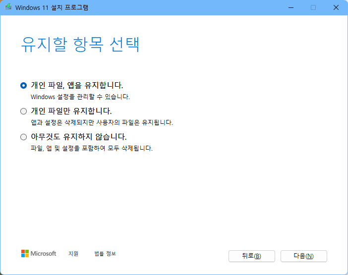 이전엔 설치 미디어 도구 사용하면 바로 설치하는 옵션이 있었는데, 윈도 11에서 해보니 ISO만 만들어주는 옵션으로만 진행이 되서 ISO를 만들고, 만든 ISO를 마운트해서 실행해야 했다. 개인 파일 유지한 채로 윈도를 재설치한다는 전체적인 방법에 큰 차이가 없는데, 설치 프로그램에서 바로 실행하는 게 아니라, ISO 만든 뒤 설치를 시도해야 하니 참조합시다.