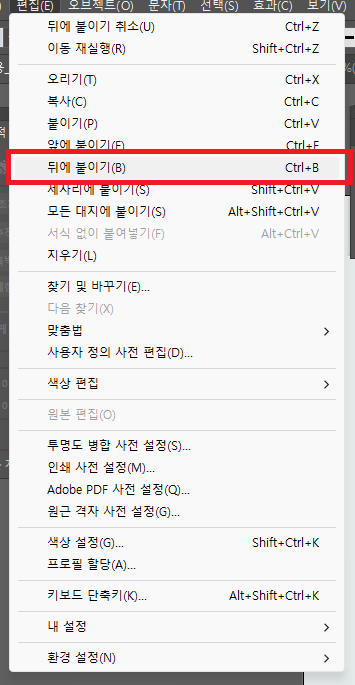쓸 대 없는 말이 길었는데, 가령 한 레이어에 수십개의 패스가 있는 상태에서 특정 오브젝트 아래의 도형을 편집해야 하는 경우, 우선 편집할 도형을 복사하고, 다른 창에서 제자리 붙여넣기로 작업 한 뒤, 작업 완료한 후 다시 원본으로 가져오자(제자리 붙여넣기로), 그 후 잘라낸 뒤, 붙여넣을 오브젝트를 선택하고, 편집 > 뒤에 붙이기(Ctrl+B)를 해주면 자기 자리 알아서 쏙 들어가니 이를 잘 활용하도록 합시다.