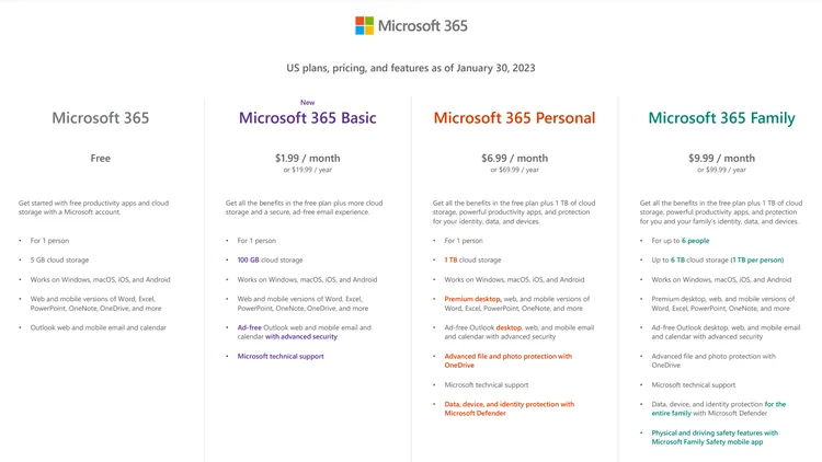 Microsoft 365 Basic 요금제 출시, 월 $1.99 2023.01.12 10:54 PC.Div.Soft/News 반응형 TheVerge에 따르면 Microsoft가 Microsoft 365구독에 새로운 제품을 추가했다고 합니다. Basic 요금제인데요, 월 $1.99의 가격에 OneDrive 100GB제공(고급 기능 추가 예정) + 광고 없는 아웃룩이라고 합니다. 1월 30일부터 사용할 수 있다고하며 데스크톱(설치형) Office는 제공되지 않는다고 하네요. 반응형 공유하기 게시글 관리 Klein Berry 'PC.Div.Soft > News' 카테고리의 다른 글 (루머)NVIDIA, 드라이버 최적화 진행중 (0) 2023.01.15 일부 삼성 SSD 제품군의 S.M.A.R.T 0E 관련 문제 (0) 2023.01.11 AMD AGESA ComboAM5PI 1.0.0.4, 일부 Ryzen CPU 코어 비활성화 이슈 (0) 2023.01.10 댓글 공유하기 다른 글 댓글 이 글 공유하기 구독하기 구독하기 카카오톡 카카오톡 라인 라인 트위터 트위터 Facebook Facebook 카카오스토리 카카오스토리 밴드 밴드 네이버 블로그 네이버 블로그 Pocket Pocket Evernote Evernote 다른 글 다이렉트 스토리지(Direct Storage) 성능 비교 다이렉트 스토리지(Direct Storage) 성능 비교 2023.01.16 (루머)NVIDIA, 드라이버 최적화 진행중 (루머)NVIDIA, 드라이버 최적화 진행중 2023.01.15 일부 삼성 SSD 제품군의 S.M.A.R.T 0E 관련 문제 일부 삼성 SSD 제품군의 S.M.A.R.T 0E 관련 문제 2023.01.11 AMD AGESA ComboAM5PI 1.0.0.4, 일부 Ryzen CPU 코어 비활성화 이슈 AMD AGESA ComboAM5PI 1.0.0.4, 일부 Ryzen CPU 코어 비활성화 이슈 2023.01.10 다른 글 더 둘러보기