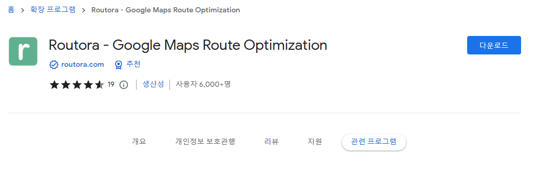 확장 프로그램 설치는 여기. 작년부터 가끔 쓰고 있는데 점점 좋아지는 것 같아서 포스팅. 무료 옵션은 최대 10개까지의 경로를 최적화해준다. 이런 앱이 종종 필요하지 않나 생각하게 됨. 당연하지만 구글 지도 사용하고, 구글 로그인 및 Routora에 로그인 되어 있어야 함.