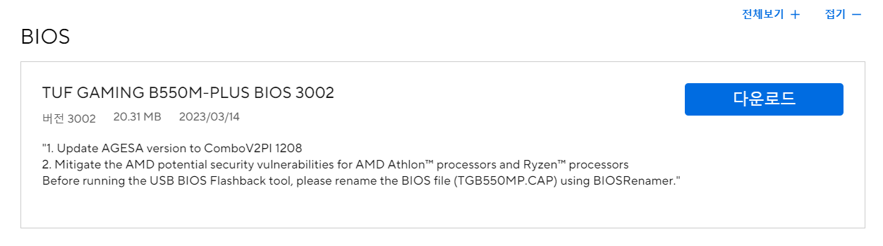 곧 400/300 시리즈 칩셋 기반의 보드에도 업데이트가 진행되지 않나 싶네요. 일단 제가 체크한 보드는 B550M-PLUS, A520M-K 입니다.