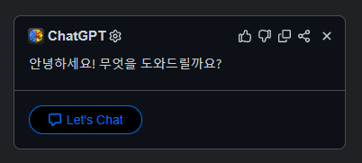 ChatGPT for Google, 크롬 확장 프로그램 2023.04.14 23:50 Web.World 반응형 대화형 AI ChatGPT를 Google에서 키워드 검색을 할 때, 이와 관련한 ChatGPT의 답변이 페이지 오른쪽에 표시되는 확장 프로그램입니다. ChatGPT 사용이 좀 더 간편하면 좋겠다고 여긴 분들이라면 나쁘지 않은 선택이라 생각합니다. 반응형 공유하기 게시글 관리 Klein Berry 'Web.World' 카테고리의 다른 글 Redmine 비트나미 패키지(VM) (0) 2023.10.03 Google, 자사 문서 도구 업데이트 (0) 2023.04.02 Google 번역, 새로운 기능 추가(문맥 번역 옵션 등 추가) (0) 2023.02.09 댓글 공유하기 다른 글 댓글 이 글 공유하기 구독하기 구독하기 카카오톡 카카오톡 라인 라인 트위터 트위터 Facebook Facebook 카카오스토리 카카오스토리 밴드 밴드 네이버 블로그 네이버 블로그 Pocket Pocket Evernote Evernote 다른 글 알리)유리창 로봇 청소기 알리)유리창 로봇 청소기 2025.03.13 Redmine 비트나미 패키지(VM) Redmine 비트나미 패키지(VM) 2023.10.03 Google, 자사 문서 도구 업데이트 Google, 자사 문서 도구 업데이트 2023.04.02 Google 번역, 새로운 기능 추가(문맥 번역 옵션 등 추가) Google 번역, 새로운 기능 추가(문맥 번역 옵션 등 추가) 2023.02.09 다른 글 더 둘러보기