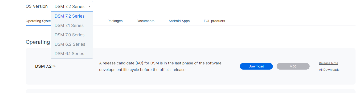 Synology DSM 7.2 RC 다운로드 가능 2023.05.05 22:27 ETC.Mobile/Nas.HomeLab 반응형 Synology DSM 7.2 RC(출시 후보 버전)의 정식 다운로드가 가능해졌습니다. 다운로드 센터에서 사용하는 NAS 모델을 선택하고, 드롭 다운 메뉴에서 7.2를 선택하면 됩니다. 다만 RC지만 실사용 후기들이 그다지 좋지 않은 평들이 조금씩 보이는 것 같습니다. 당연하겠지만 실사용에 있어 베타 사용은 자제를 하시는게 어떨까 싶네요. 반응형 공유하기 게시글 관리 Klein Berry 'ETC.Mobile > Nas.HomeLab' 카테고리의 다른 글 Synology, DSM 7.2 정식 출시 (0) 2023.05.23 Synology DSM 7.1.1 Upate 3 출시 (0) 2022.12.15 Synology, DSM 버전: 7.1.1-42962 업데이트 2 배포 (0) 2022.10.26 댓글 공유하기 다른 글 댓글 이 글 공유하기 구독하기 구독하기 카카오톡 카카오톡 라인 라인 트위터 트위터 Facebook Facebook 카카오스토리 카카오스토리 밴드 밴드 네이버 블로그 네이버 블로그 Pocket Pocket Evernote Evernote 다른 글 Synology, DiskStation DS224+ 및 DS124 공개 Synology, DiskStation DS224+ 및 DS124 공개 2023.07.27 Synology, DSM 7.2 정식 출시 Synology, DSM 7.2 정식 출시 2023.05.23 Synology DSM 7.1.1 Upate 3 출시 Synology DSM 7.1.1 Upate 3 출시 2022.12.15 Synology, DSM 버전: 7.1.1-42962 업데이트 2 배포 Synology, DSM 버전: 7.1.1-42962 업데이트 2 배포 2022.10.26 다른 글 더 둘러보기